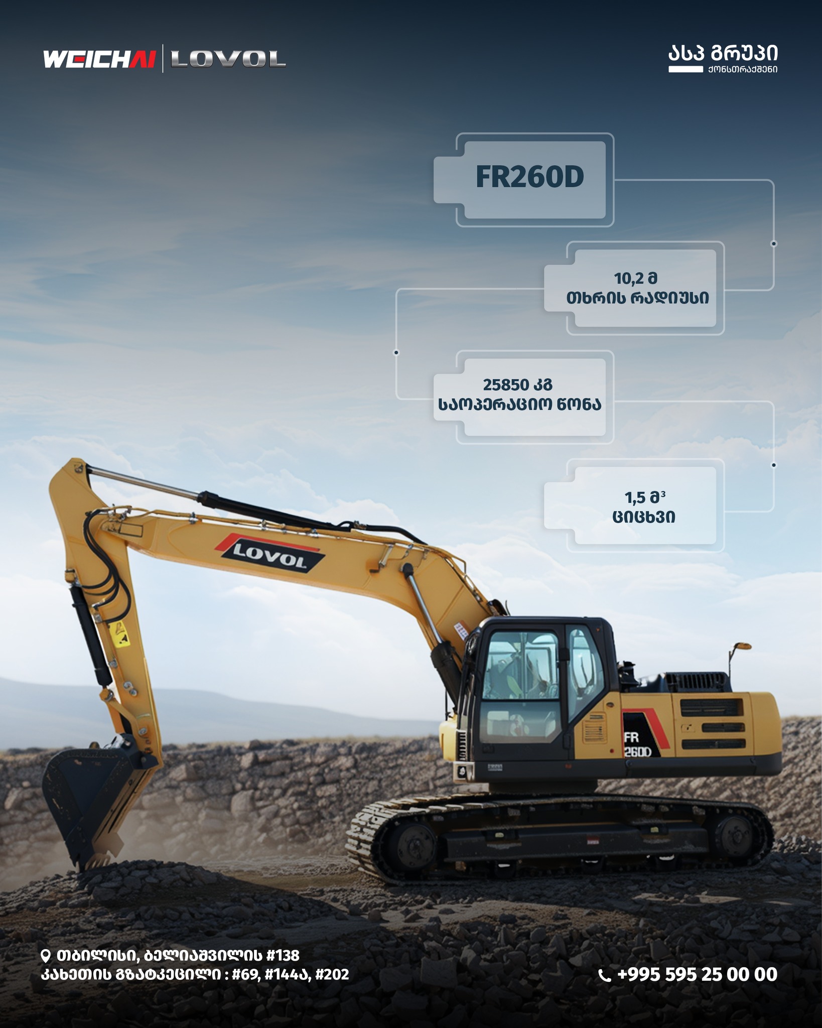 იცით რომ LOVOL FR260D მოდელი საუკეთესო არჩევანია მასშტაბური მშენებლობებისა და ინერტული მასალების მოსაპოვებლად? მთავარი უპირატესობა — მექანიკური ტუმბო:საწვავის მექანიკური მიწოდება ნიშნავს ნაკლებ წვას, მაქსიმალურ გამძლეობას და...
