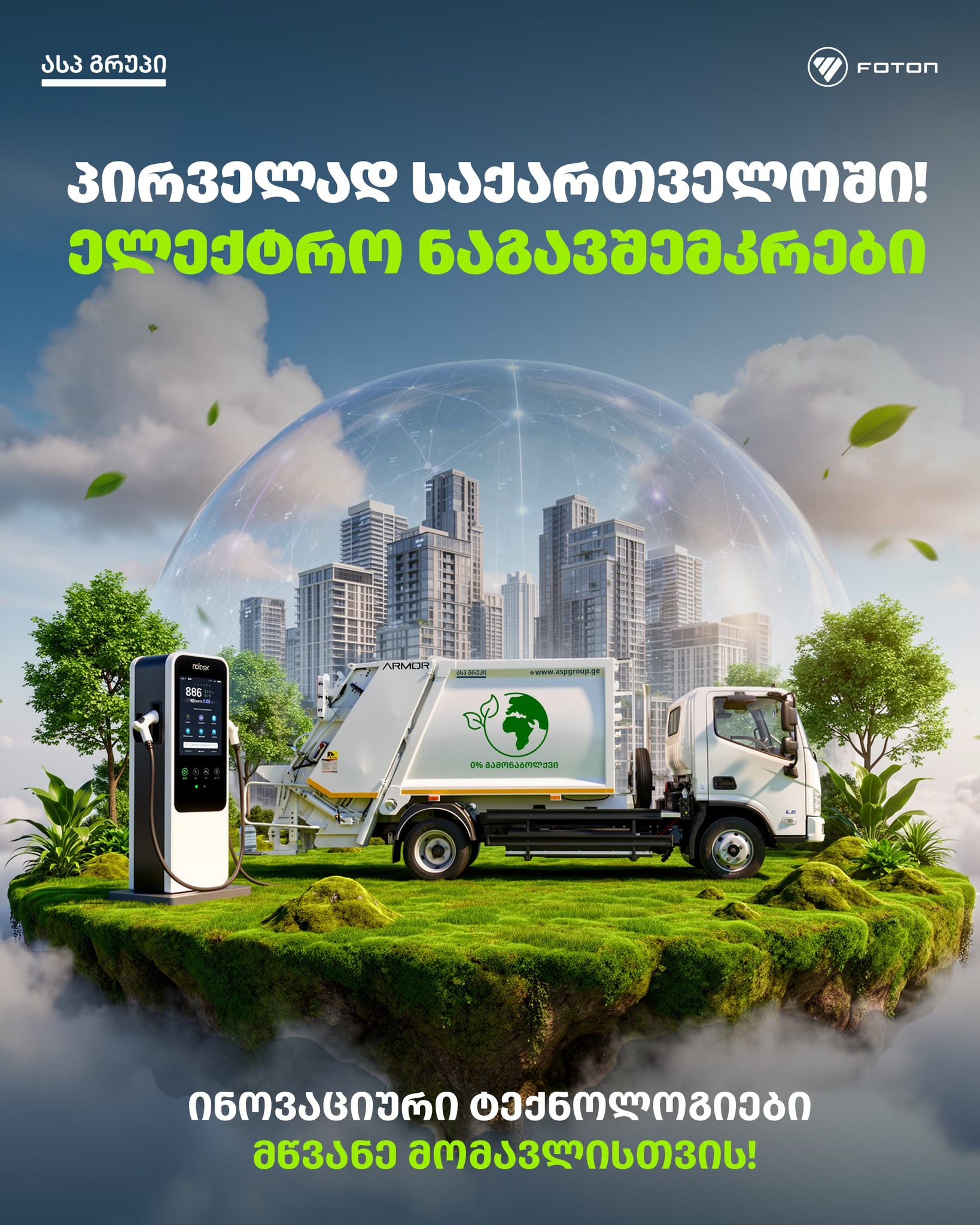 ჩვენი გუნდის მიერ FOTON-ის სრულიად ელექტრო ავტომობილზე დამონტაჟდა 6 მ³ მოცულობის ნაგავშემკრები